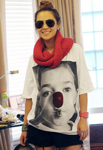 | 品名 | 韓風 李孝利中袖個性頭像紅鼻子T恤 220元 | |||||||
