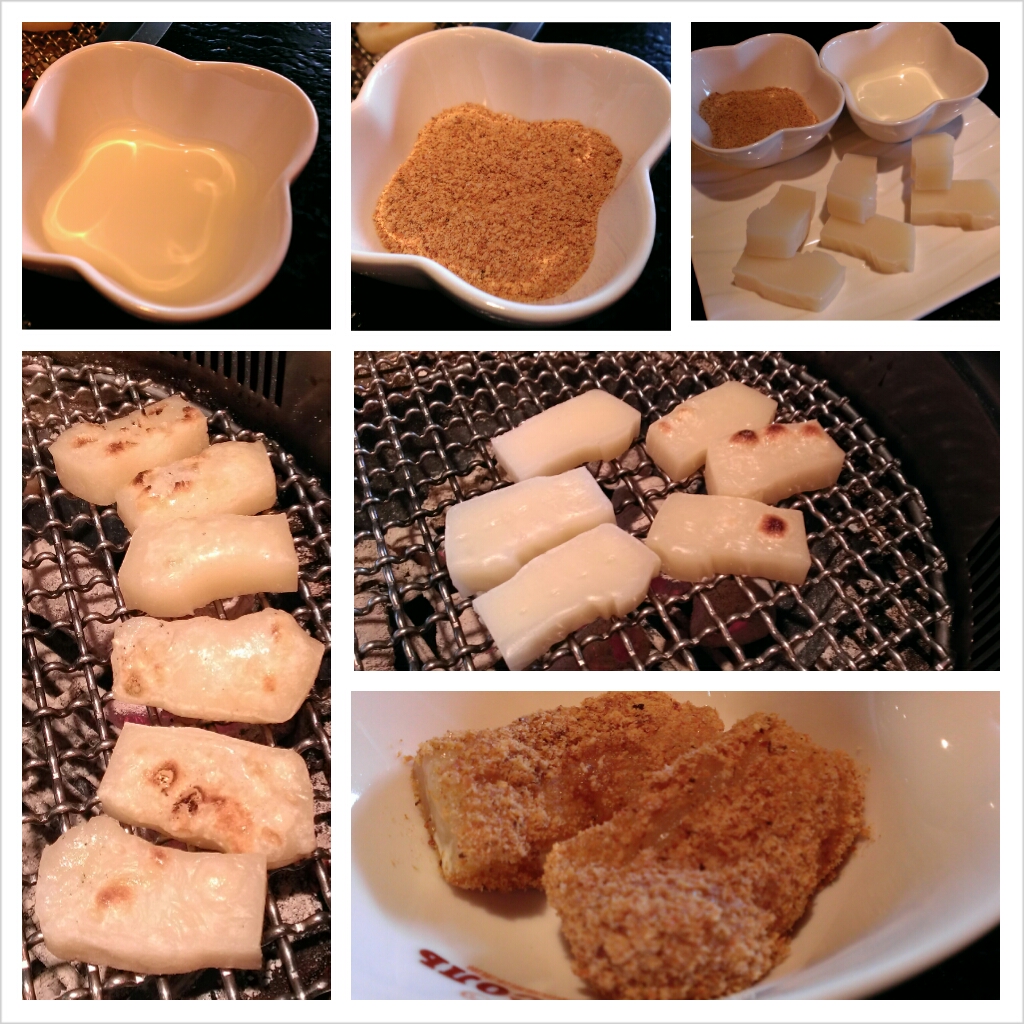 麻糬烤到"膨軟",先裹上一層鮮奶油再沾花生粉