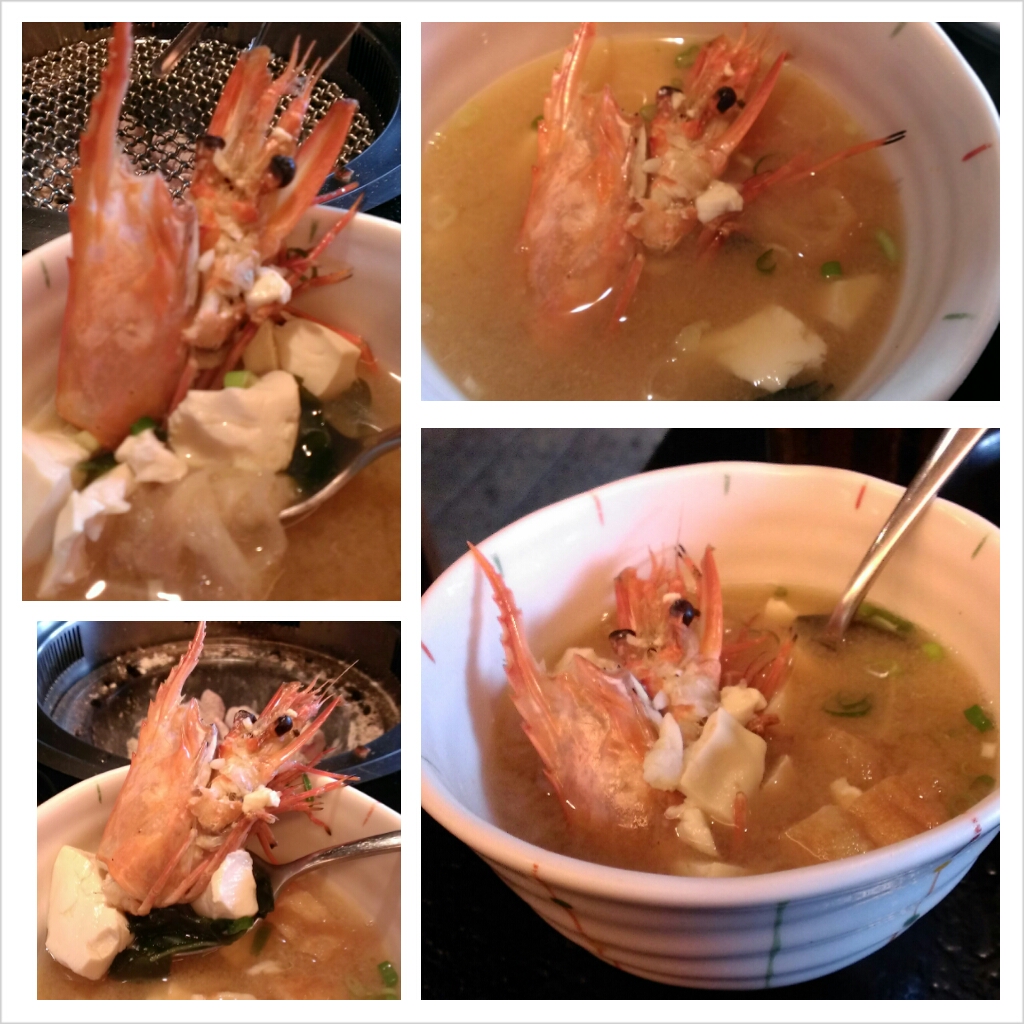 蝦頭料理味增湯 烤過的大蝦頭廚師也沒浪費掉,會再幫您拿去烹煮味增湯