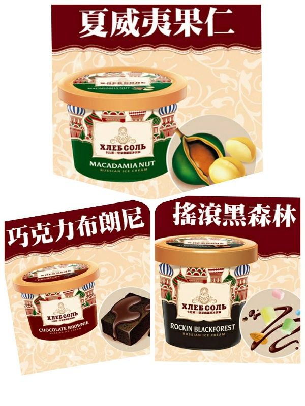 卡比索冰淇淋有三種口味,巧克力布朗尼、夏威夷果仁、搖滾黑森林