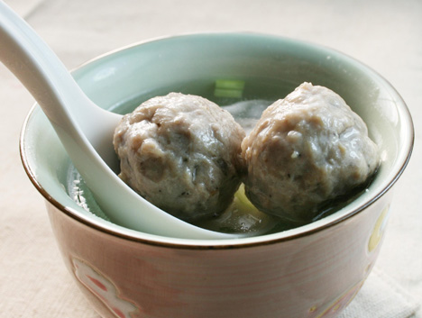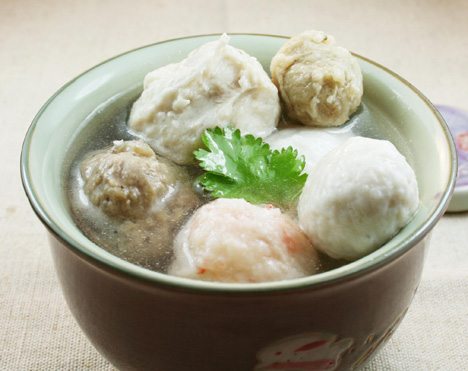 特色在於旗魚魚漿內所包裹的肉餡,咬下去的第一口,能感受到豬肉的原汁從魚丸中滿溢出來,簡直可以說是魚丸中的湯包,嚴選通過CAS認證的新鮮豬肉,加上獨家的配方調味,呈現出豬肉最原始的美味極鮮美的湯汁。魚丸跟鮮豬肉搭配堪稱一絕。
