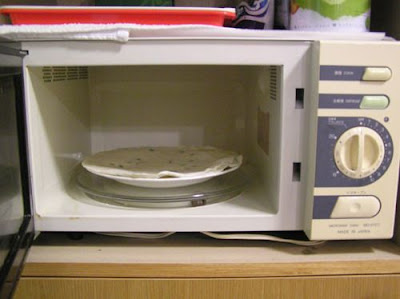 1.剛從冰箱冷凍庫拿出來的餅皮先微波解凍。