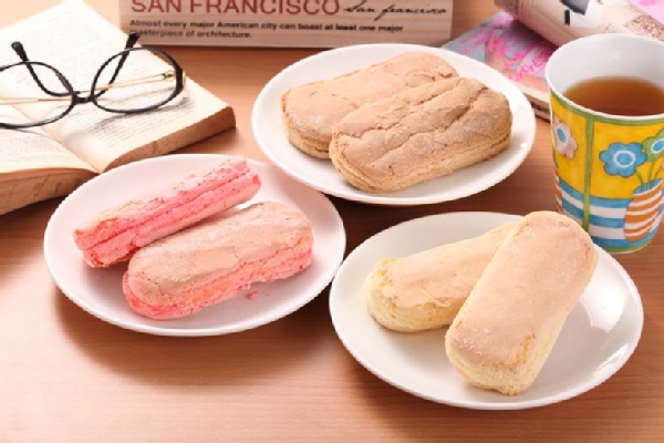 亞信馬卡龍有多種口味,原味、咖啡和草莓獨受青睞,「微酥的外皮裹上糖衣,咬下去瞬間香氣噴出,和著奶油的口感相當綿密細緻」西點屑沾滿了客人嘴角,這是亞信馬卡龍的口感魅力。