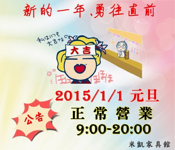 【公告】米 凱 家 具 館...元旦2015/1/1-1/4 正常營業,陪大家一起過新年~