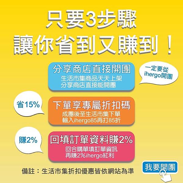 ihergo愛合購X生活市集正式結盟!開團下單有專屬折扣碼打85折,愛合購再回饋主購2%紅利~