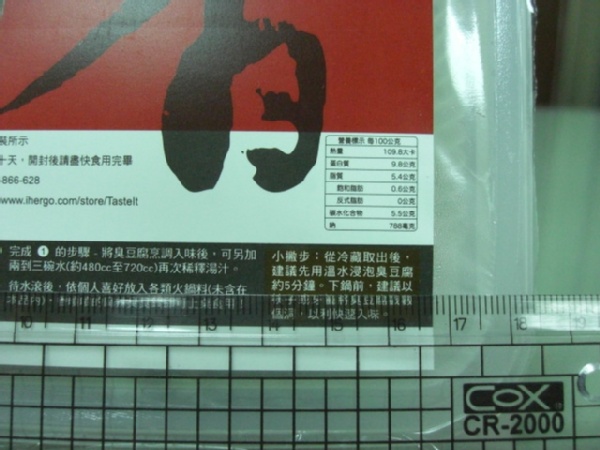 味道嚐起來很辣,醬包的調味只有辣度,嚐不到香料味及其他調味。所以自行再加入了大蒜、豆鼓,才比較有味道、香味。但豆腐嚐起來頗嫰,口感極佳,臭味十足~~