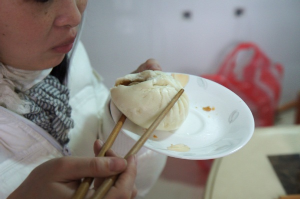 家人也是吃了一口,說"嗯!味道香,也不會油膩,也沒有肥肥的,簡直是軟棉棉的,加上肉包外皮也很有彈性呢