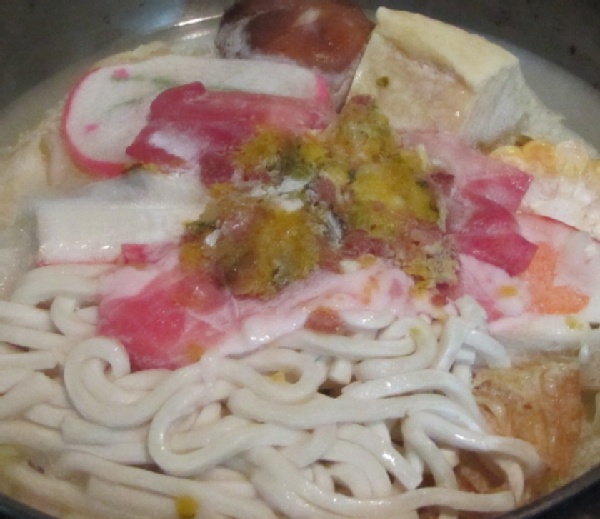 在未解凍狀態下只好趕緊邊加熱邊由上淋熱湯讓蟹味棒稍融可以取出,