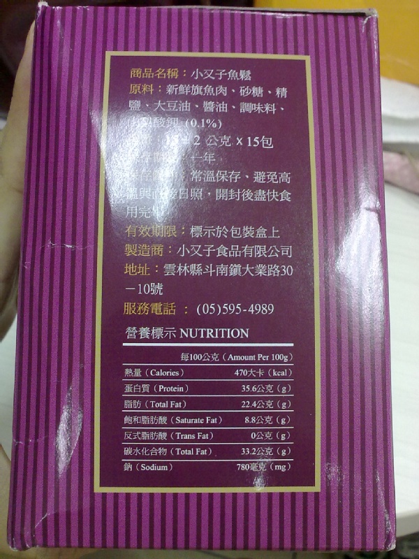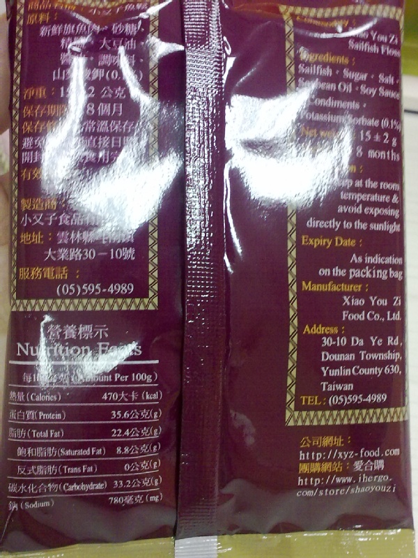 shirley_342002(91) 回覆 在 2011/8/8 1:36 pm 發表 () 這是拿到的盒子有一點被我壓到了QQ 有說明 裡面有15包口味分別有原味、蘿勒、芝麻海苔 包裝長這樣 標示很詳盡呢 我開了一包原味的來嘗試 光吃魚鬆本體是有點一鹹 但我覺得加上白飯或稀飯或土司 應該很不錯!! 品質也還滿好的 而且本來預計今天到貨 結果抽到的兩三天過後就出了 因為最近很忙所以到今天才寫>"< 感謝廠商提供囉!! 回覆作者