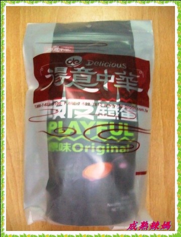 最後試吃的這款是"辣味烏魚",因為包裝上面並沒有標示產品名稱,所以拿到產品時,一度以為是鹹魚之類的東西,待上網看過產品後才知道原來是"烏魚";切開一半後可以看得出來,這魚塊滷得很透,口感也很特別,吃起來有點像在吃肉乾一樣,沒有什麼腥味,吃在嘴裡感覺很夠味,非常甘甜,辣度也適中,連兒子也對這款"烏魚"吃的讚不絕口;此時很適合來一杯冰涼的"生啤酒",真的是"喔依西的啦"~