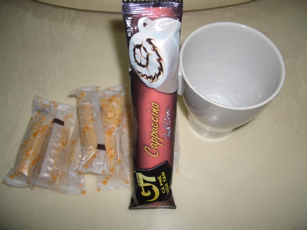 美好的早晨就由榛果卡布奇諾開始吧!其顏色也與G7另二種卡布奇諾差不多,味道除了有淡淡的奶香外,還有著新鮮的榛果味,沖泡熱水後很容易就攪拌均勻,榛果味道夾帶著奶香味撲鼻而來,忍不住先嚐了一口,仍然是先嚐到卡布奇諾濃厚香甜的奶泡,再來就是榛果咖啡濃郁滑順的好味道,喝完後榛果咖啡味停留在口中為我的早晨帶來一個好的開始。