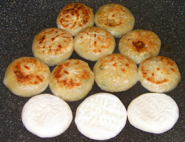 用鍋子煎到澎起來、長得像顆小包子時,就可以吃了~