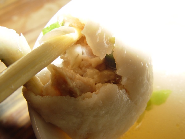 魚丸是用上等的深海魚肉打成漿,再包鮮瘦肉、香菇以及荸薺等獨家研製的餡料,經過烹煮即香味四溢,配上大骨湯及少許的薑絲,這種美味是別家嚐不到ㄛ!料多又實在