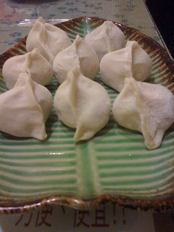 高麗菜水餃2顆,韭菜水餃2顆,高麗菜蝦仁2顆(或吻仔魚高麗菜)