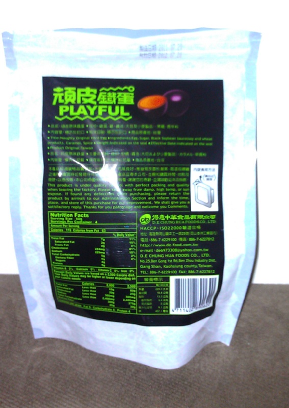 試吃品是用一個印有黑色鐵蛋公仔的超炫夾鍊袋包裝著
