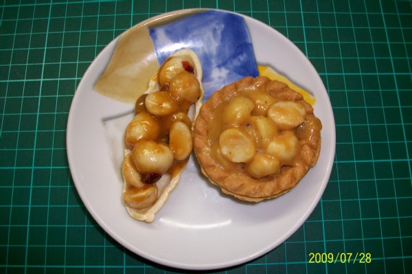 夏威夷塔: 餅皮酥脆 咀嚼起來有熱熱的感覺 熱量應該不低吧 內饀豐富極了 看起來小小一顆卻可讓人品味許久....