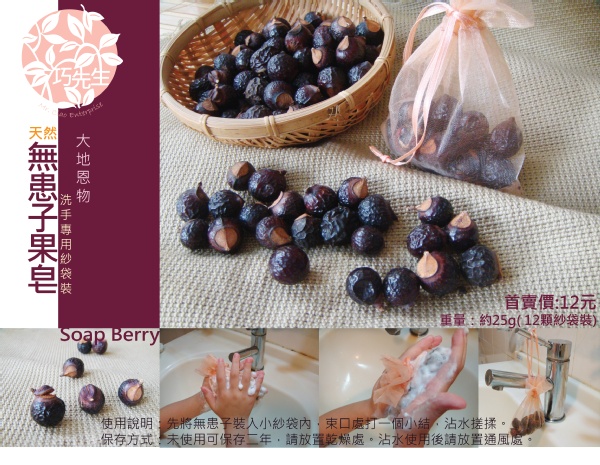 巧先生無患子洗手果皂 最古早最天然的洗潔劑! 推廣價:15元(小紗袋裝) 原價20元