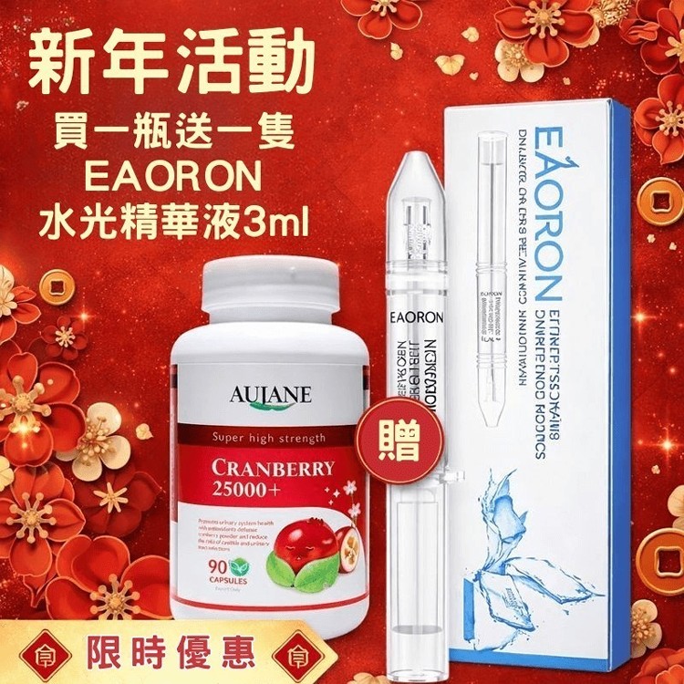 🔥 新春加碼買一瓶送 一支 ❗️ AUJANE 高濃縮蔓越莓膠囊 90顆 買就送 「Eaoron 水光精華液」😱 👉3/2日結單 ⚠️ 請下單前三思,下單後請勿刪單~隨意刪單...