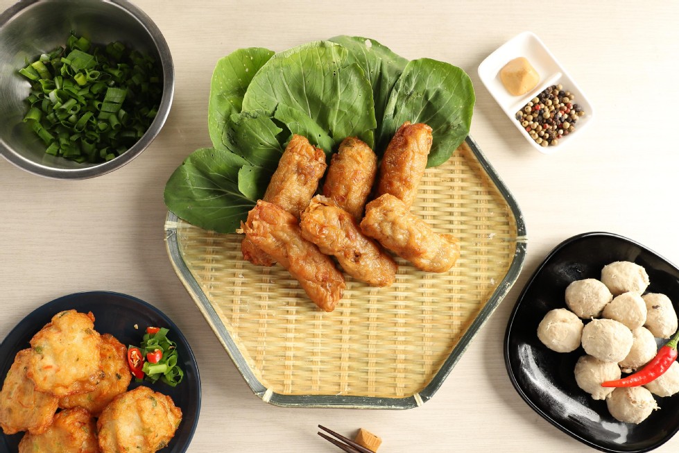 雞捲:雞捲有許多說法,有些人說是把多餘的剩菜捲起來做成,台語『加』有多餘的意思,也有人認為單純是因為外觀看起來像是雞脖子。『基隆魚鮮來』有別於多數業者以大量高麗菜、紅蘿蔔碎丁來取代及減少魚漿用量,用腐皮將魚漿、豬絞肉、洋蔥碎丁、豆薯等內餡拌勻,包起來後下油鍋油炸,成功擄獲每一個挑剔味蕾。