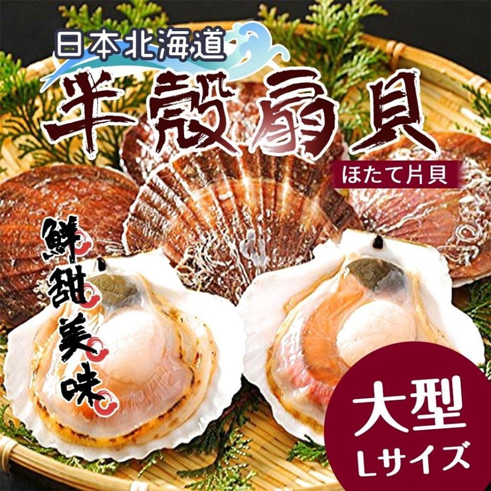 日本進口大顆級半殼扇貝500±10%(約8-9顆)