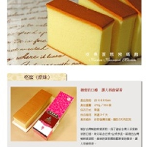 本店其他商品 查看全部 日式巧克力 原價$220 $160 蛋糕泡芙(5入) 原價$250 $199 提拉米蘇(8吋) 原價$900 $680 香蕉蛋糕 原價$135 $110 台式蜂蜜 原價$180 $130 長崎蛋糕 蜂蜜 原價$200 $150 年輪蛋糕原味 原價$200 $150 米年輪 $160 米銅鑼燒 (6入)-附紙袋 $180 橘香蜂蜜 原價$180 $130 年輪蛋糕巧克力 $160 乳酪蛋糕 $150 抹茶年輪 原價$230 $170 長崎蛋糕 抹茶 $150 水滴乳酪(6入) 原價$360 $240 紅豆蛋糕 原價$220 $150
