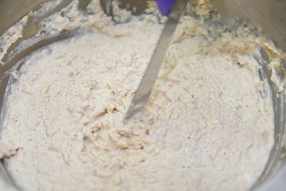由鮪魚、洋蔥、沙拉、黑胡椒鮮製而成,品嘗鮪魚與普蘿麵包的新體驗。