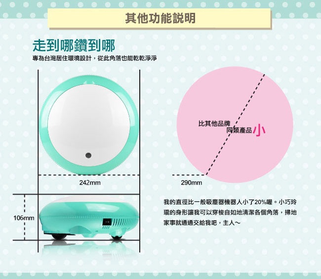 ◆適用木質地板、人造塑膠地板、瓷磚…等硬地板,是您居家清掃的好幫手