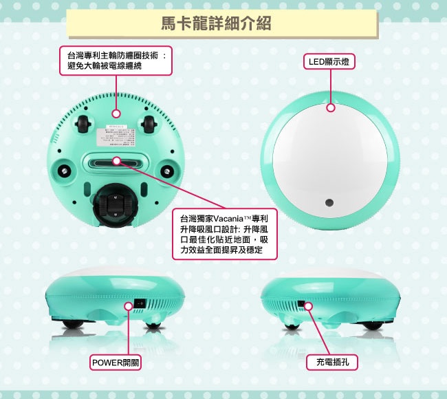 趴趴走 macaron馬卡龍迷你自動機器人吸塵器(薄荷綠) rvma2-mg