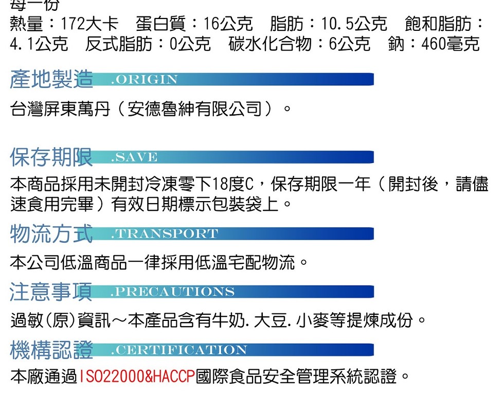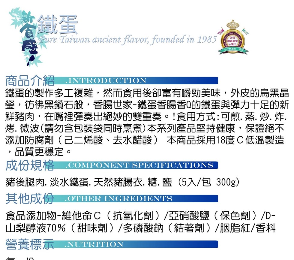 商品說明 雙料冠軍~細細回憶你的影像~~彷彿見你離去模樣~~~ 淡水阿婆鐵蛋~~你不要走~~~ 嗯? (小編你正經一點) 細細咀嚼 風味無窮 最有潛力的香腸 請參考官方說明https://www.sausage.com.tw/product-detail-2340330.html