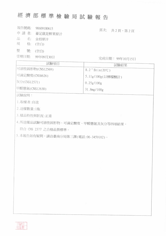說明:符合CNS2377國家標準天然果汁類以及SGS檢驗無塑化劑