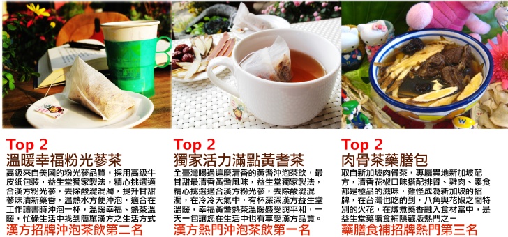 創新特調漢方水果蜜餞、手工漢方飲品(電鍋燉煮)、便利飲品系列、漢方傳統藥膳藥材、