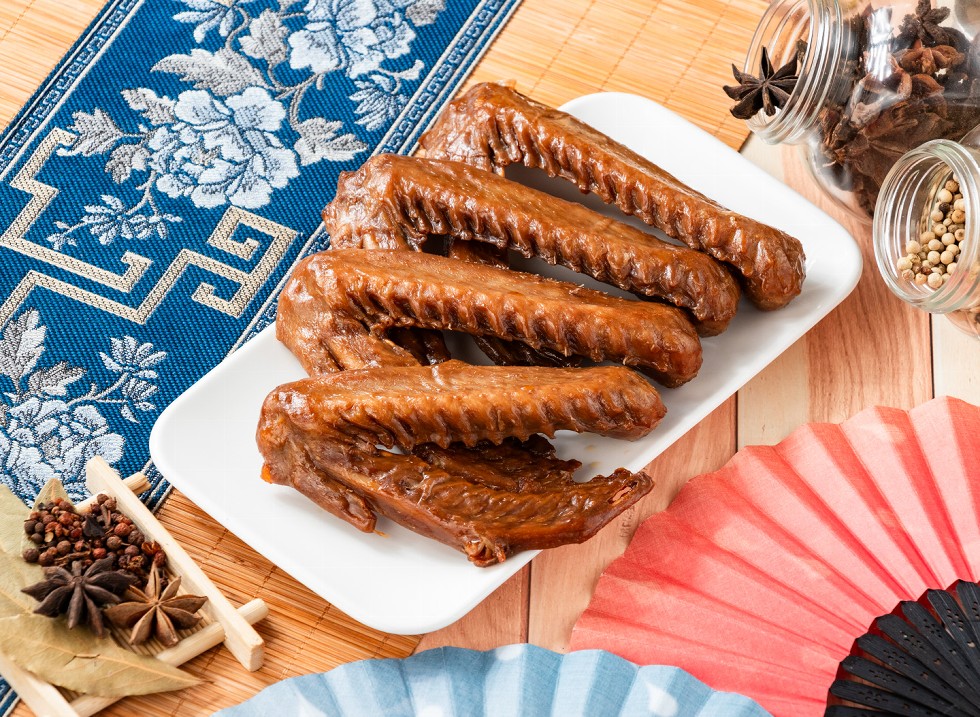 新鮮鴨翅以傳統方式滷製、浸泡,肉質Q彈而不爛。