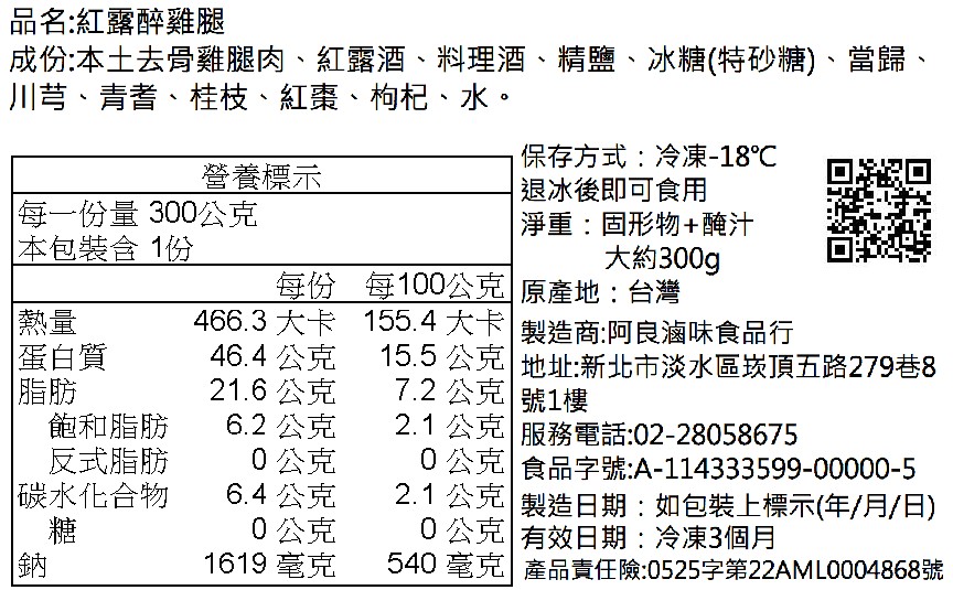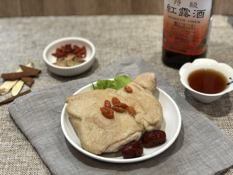 原料:本土去骨雞腿肉、紅露酒、料理酒、鹽、糖、枸杞、紅棗、黃耆、當歸、桂枝、川芎。