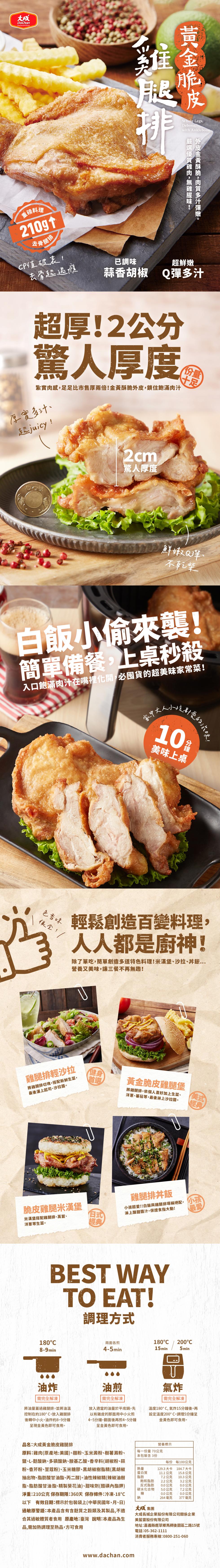 平均89.8元/包 媒體報導,熱銷商品! 未預炸/煎商品,重達210克以上/包(1片無骨雞腿排)