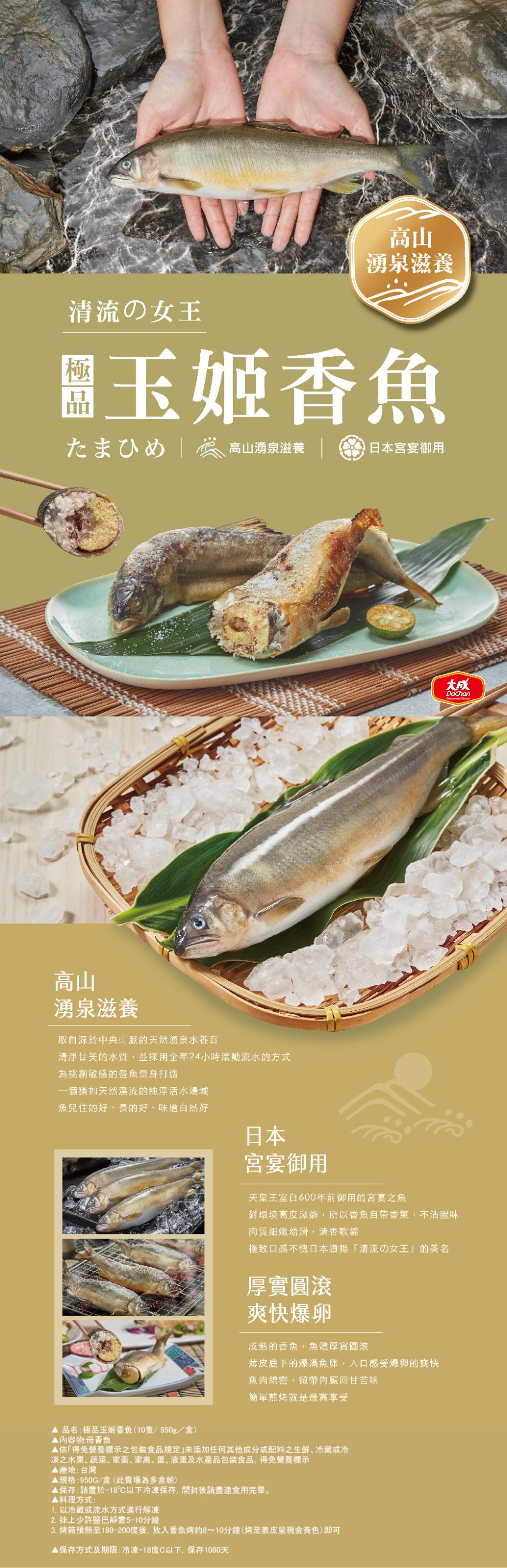 品名:【大成食品】極品玉姬香魚(5隻/ 500g/盒)