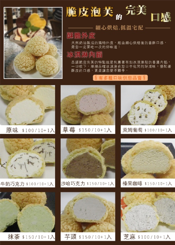 本店其他商品 查看全部 咖啡提拉米蘇 $350 原味瑞士捲 $150 沙哈巧克力瑞士捲 $200 榛果咖啡瑞士捲 $200 牛奶巧克力瑞士捲 $150 萊姆葡萄瑞士捲 $150 芋頭瑞士捲 $200 抹茶瑞士捲 $200 芝麻瑞士捲 $150 草莓瑞士捲 $150 原味脆皮泡芙 $100 芝麻脆皮泡芙 $100 牛奶巧克力脆皮泡芙 $100 草莓脆皮泡芙 $150 沙哈巧克力脆皮泡芙 $150 芋頭脆皮泡芙 $150 抺茶脆皮泡芙 $150 榛果咖啡脆皮泡芙 $150 原味提拉米蘇 $350 草莓提拉米蘇 $350