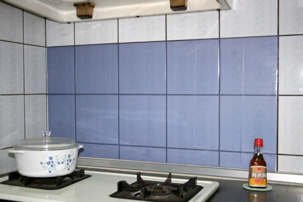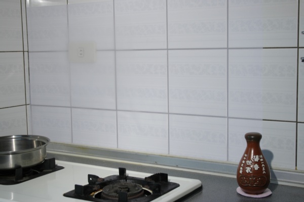 現在用彩繪布廚房漂亮多了,而且牆上真的比較不油膩喔!!