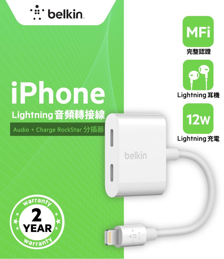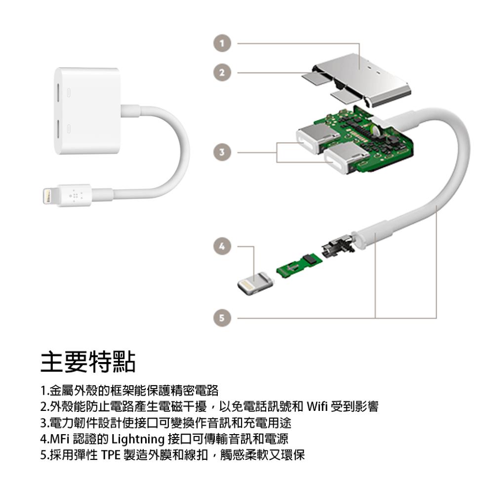 免運 【Belkin】Lightning Audio+Charge 蘋果充電分插器 音頻轉接器