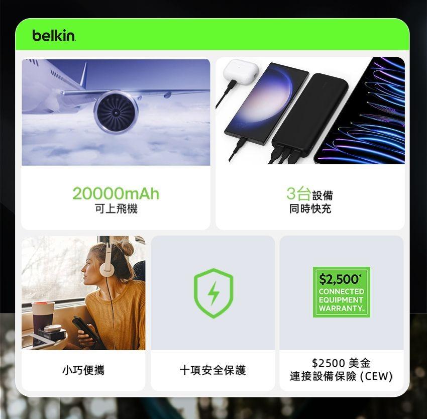 品名:貝爾金 3孔行動電源20000mAh
