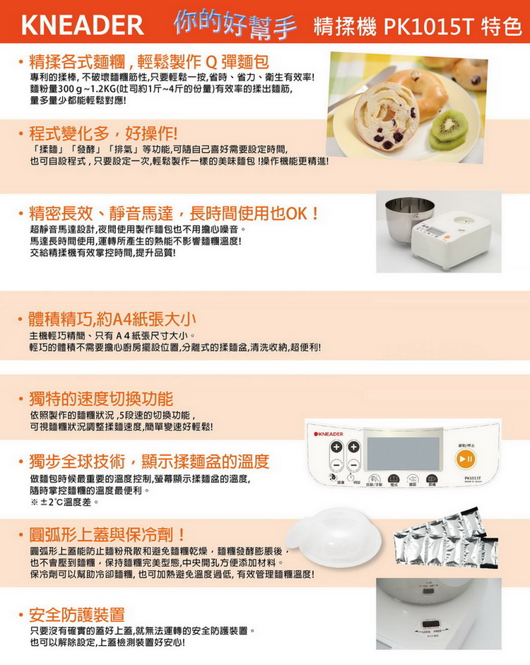 * 獨特的速度切換功能,獨步全球技術,顯示揉麵盆的温度