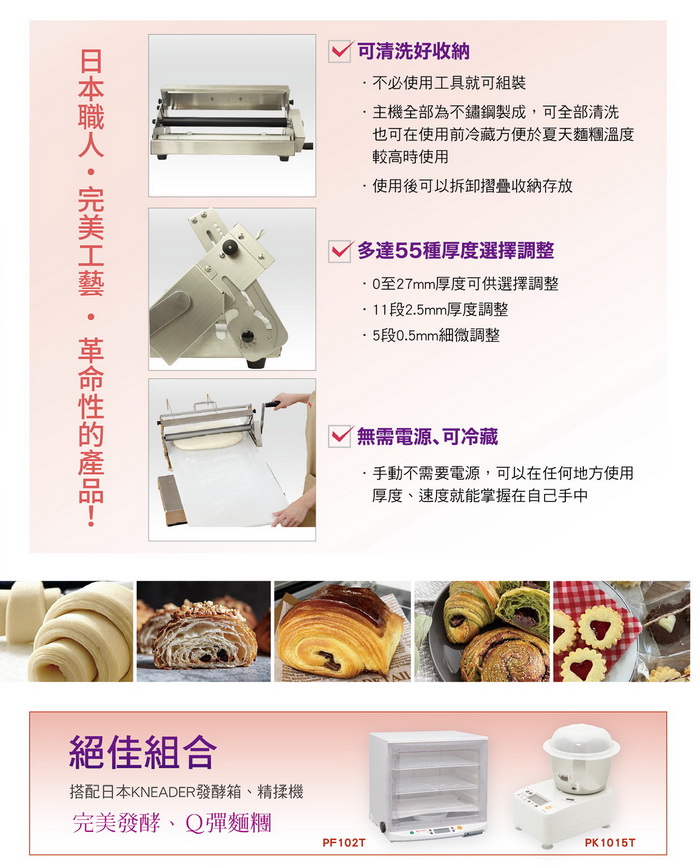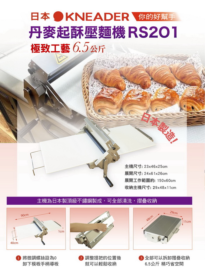 • 【日本KNEADER】可清洗收納丹麥起酥壓麵機RS201