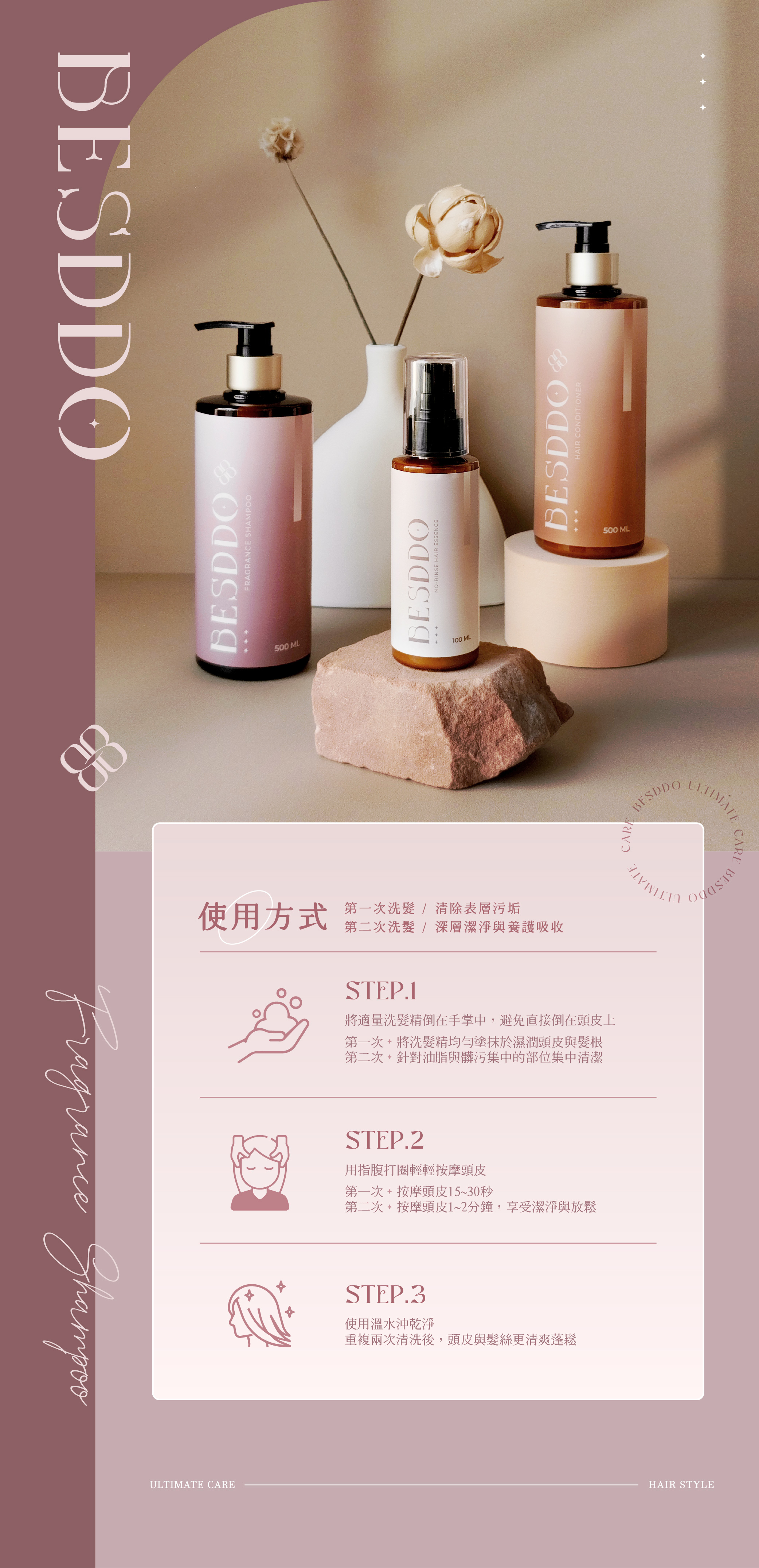 養護髮絲:可搭配【水潤深層護髮素】或【免沖洗護髮精華】