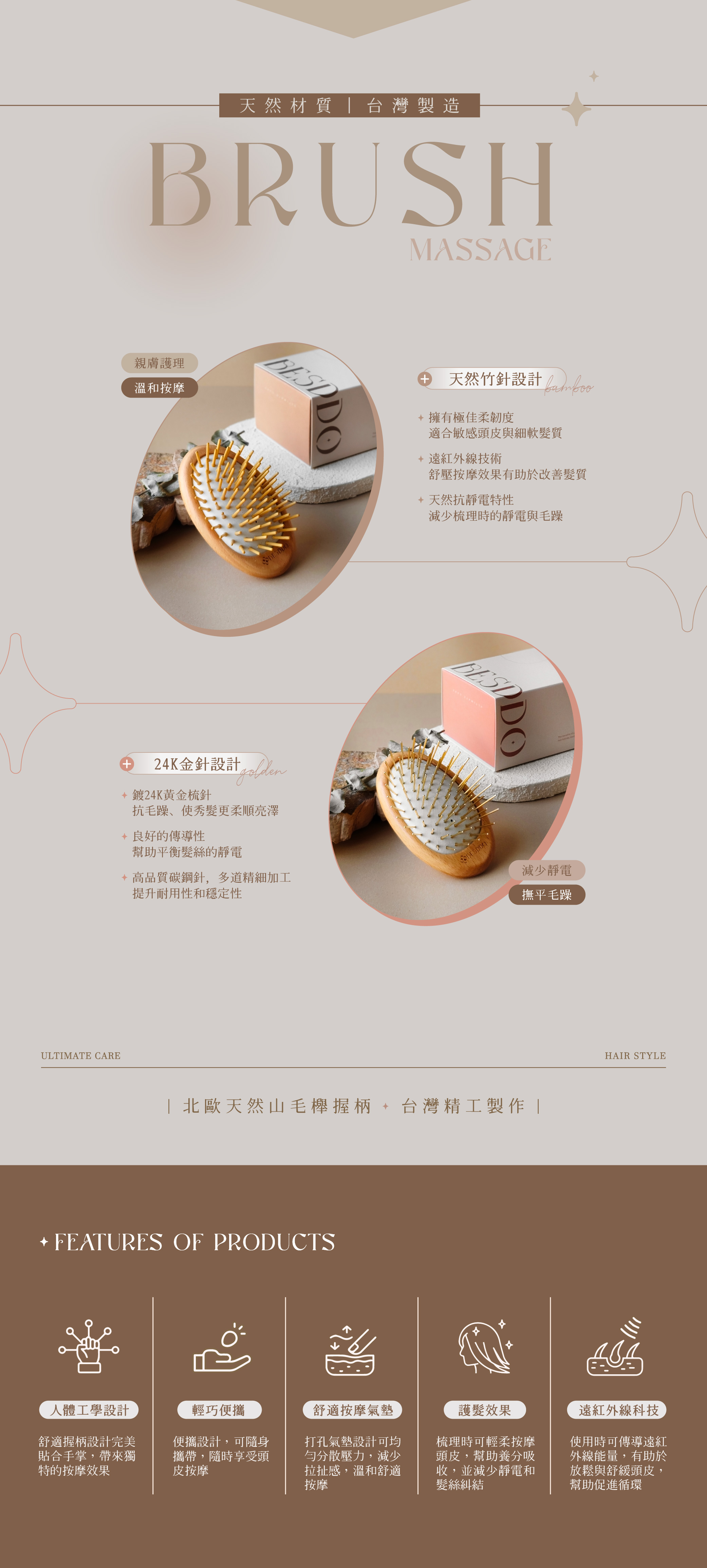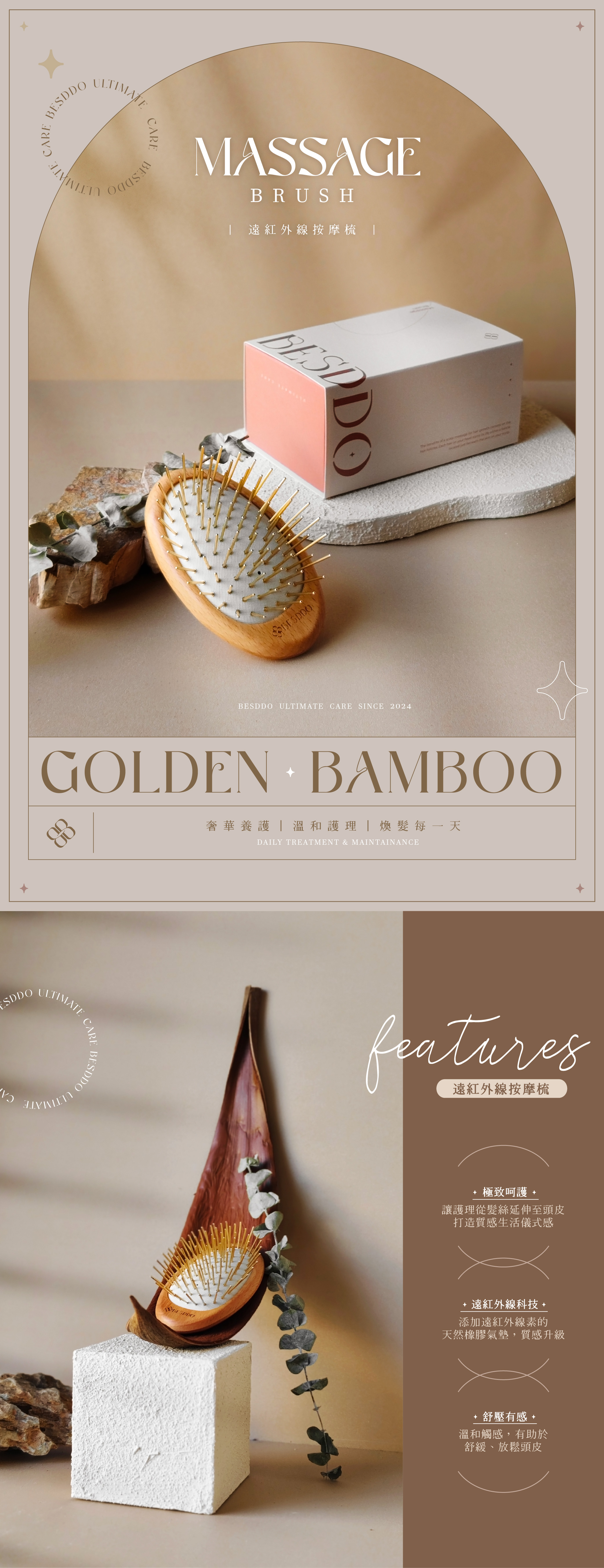 蓓詩垛 遠紅外線按摩梳|24K金針 / 竹針|極致呵護 × 遠紅外線科技 × 舒壓有感