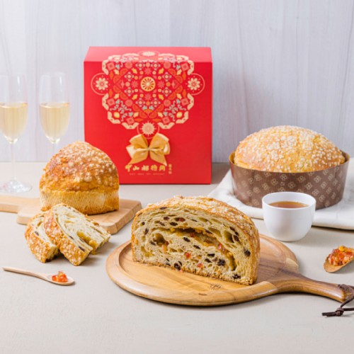 潘那朵尼起源於米蘭是義大利人節慶慶祝用的麵包。口感介於蛋糕與麵包之間的潘娜朵妮,使用進口的酵母種,加上師傅調配出"水、油與蛋的黄金比率"。歷經二段式發酵完成後,再加入經過5-7天熟成之進口酒釀果乾一同烘烤,作工繁雑,整個開始製作到販售需14天時間,口感鬆軟細緻宛如蛋糕般,風味層次豐富,絕對讓您驚豔。