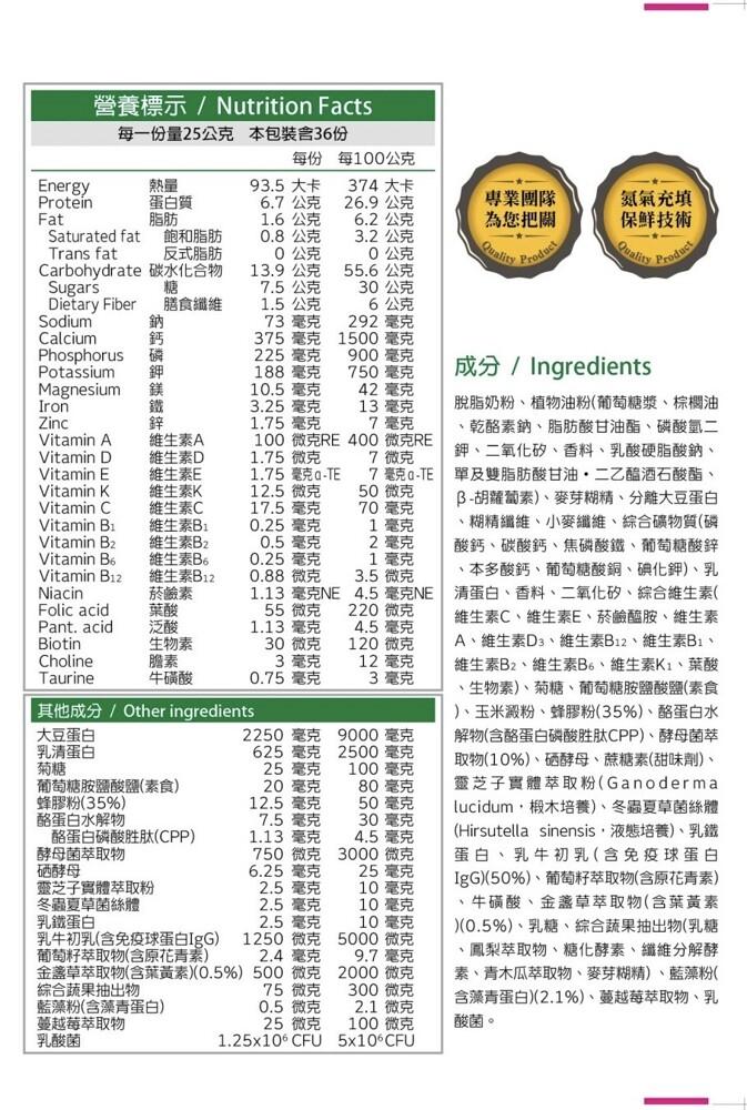將5匙(約25公克)營養配方加入已煮過的150c.c溫開水(50~60度)沖調,可依照個人喜好調整濃淡