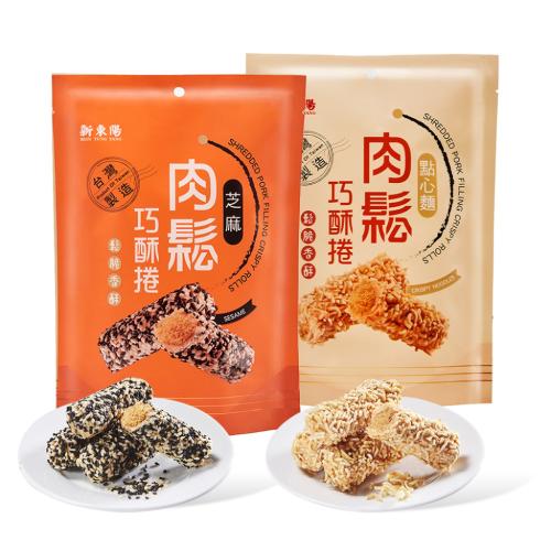 酥脆的煎捲包覆新東陽的明星商品肉鬆,煎捲中心塞滿新東陽肉鬆
