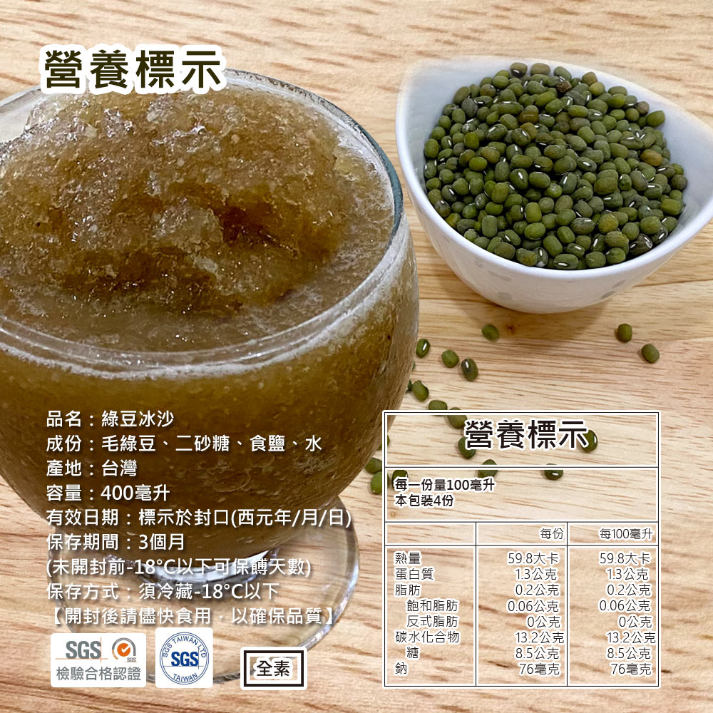 商品名稱:【JOE_SMOOTHIE冰沙】綠豆冰沙400ml(10包/箱) 成份、食品添加物名稱:毛綠豆、二砂糖、食鹽、水 商品規格:400ml/包,共10包 保存期限:3個月 製造廠商或國內負責廠商名稱:果沁整合行銷有限公司 製造廠商或國內負責廠商地址:台北市松山區塔悠路19號9樓之4 製造廠商或國內負責廠商電話:02-27687938 產品責任險:0504字第21AML0001345號 食品業登錄字號:F-154863361-00000-9 原產地(國):台灣