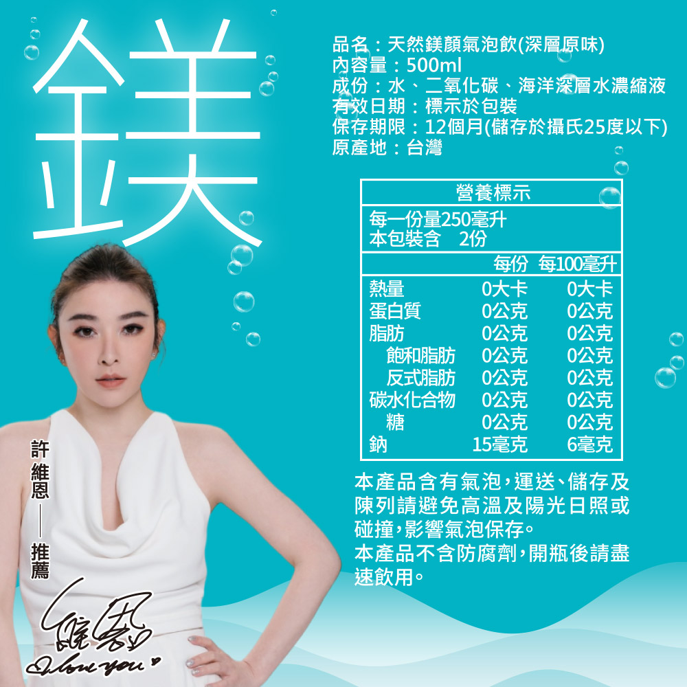 商品名稱:天然鎂顏氣泡飲500ml(24瓶/箱)