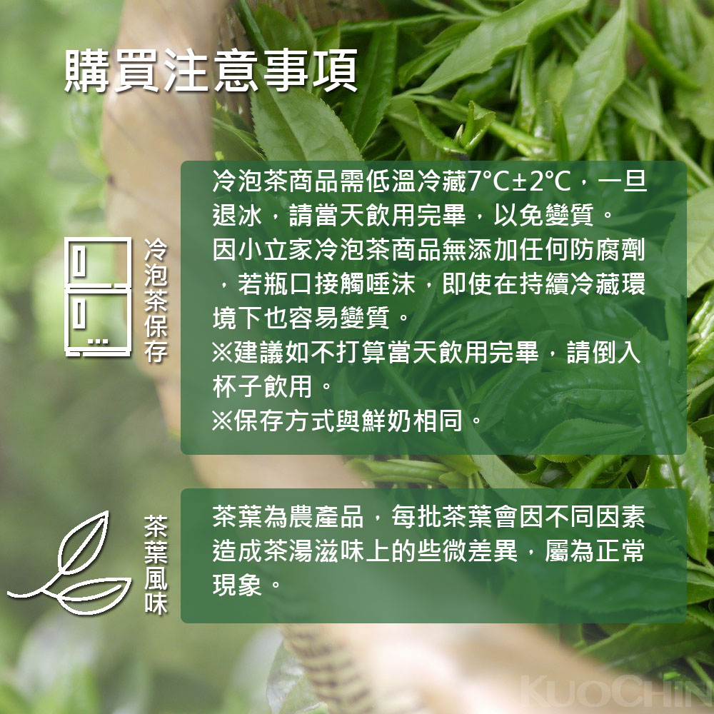 因冷泡茶商品無添加任何防腐劑,若瓶口接觸唾沫,即使無退冰,在持續冷藏環境下也容易變質。