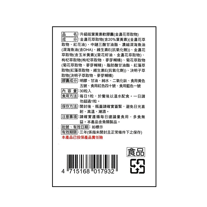 免運 【永信藥品】健康優見高單位升級版葉黃素軟膠囊(金盞花萃取物)﹝小資屋﹞(0102213)